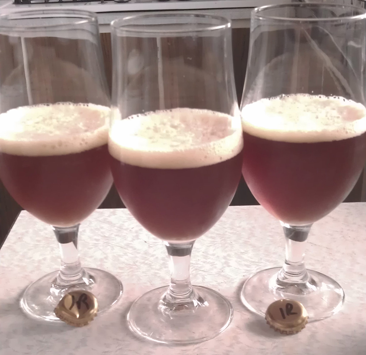 Three glasses of Iron Curtain Imperial Red Ale ready for drinking