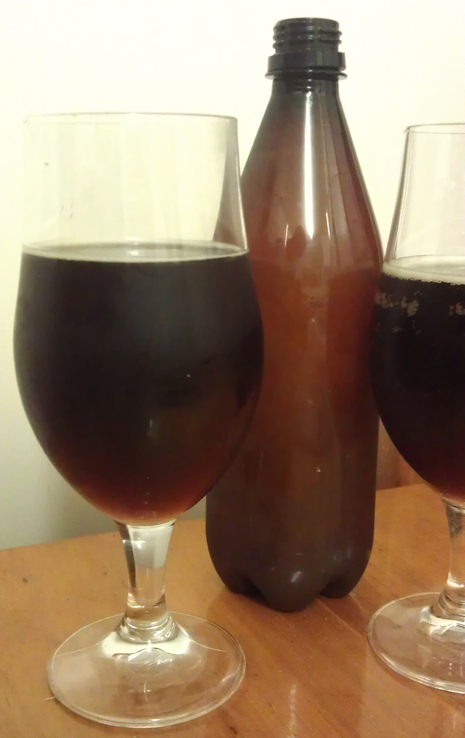 The beer is a kit called Dark American Ale and comes from Brewcraft/Liquorcraft. Ingredients included cans of liquid malt and some steeping grains. Nothing too complex. And looks like it turned out well.