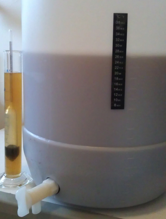 The wort from the stout took a while to chill. Over an hour even with a big chunk of ice direct into it to cool down. Then finally was ready to pour into the fermenter that had the Milk Porter, and the yeast left behind. A good shake up and done. All that was left was to get a gravity sample. This came out with a bit of froth. I left it for a bit to settle down. Then had to leave before it was clear.