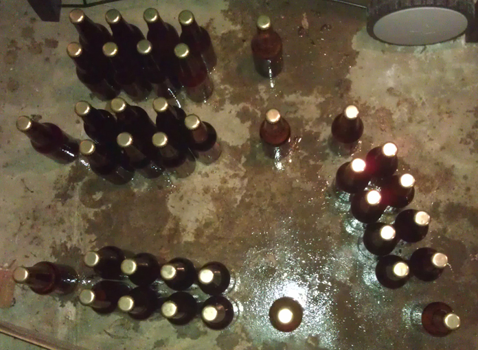 While the wort from the stout was chilling it was time to bottle the Milk Porter #1. That was a big effort. 15 litres were racked off for bulk priming, then into 45 stubbies. The remaining 3 litres were bottled into long necks with a very special twist. Each of the four bottles were primed, one shot of coffee each AND a 2 cm cut from a dried vanilla bean. These four bottles will be conditioned for a minimum of two months. Really excited about these.